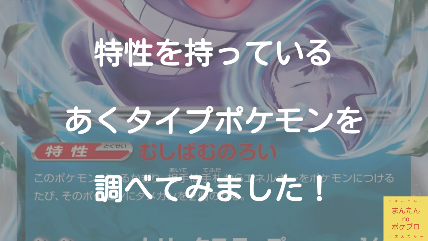 この記事では私のポケカの勉強がてらに特性を持つあくタイプのポケモンを紹介しています(^-^)/