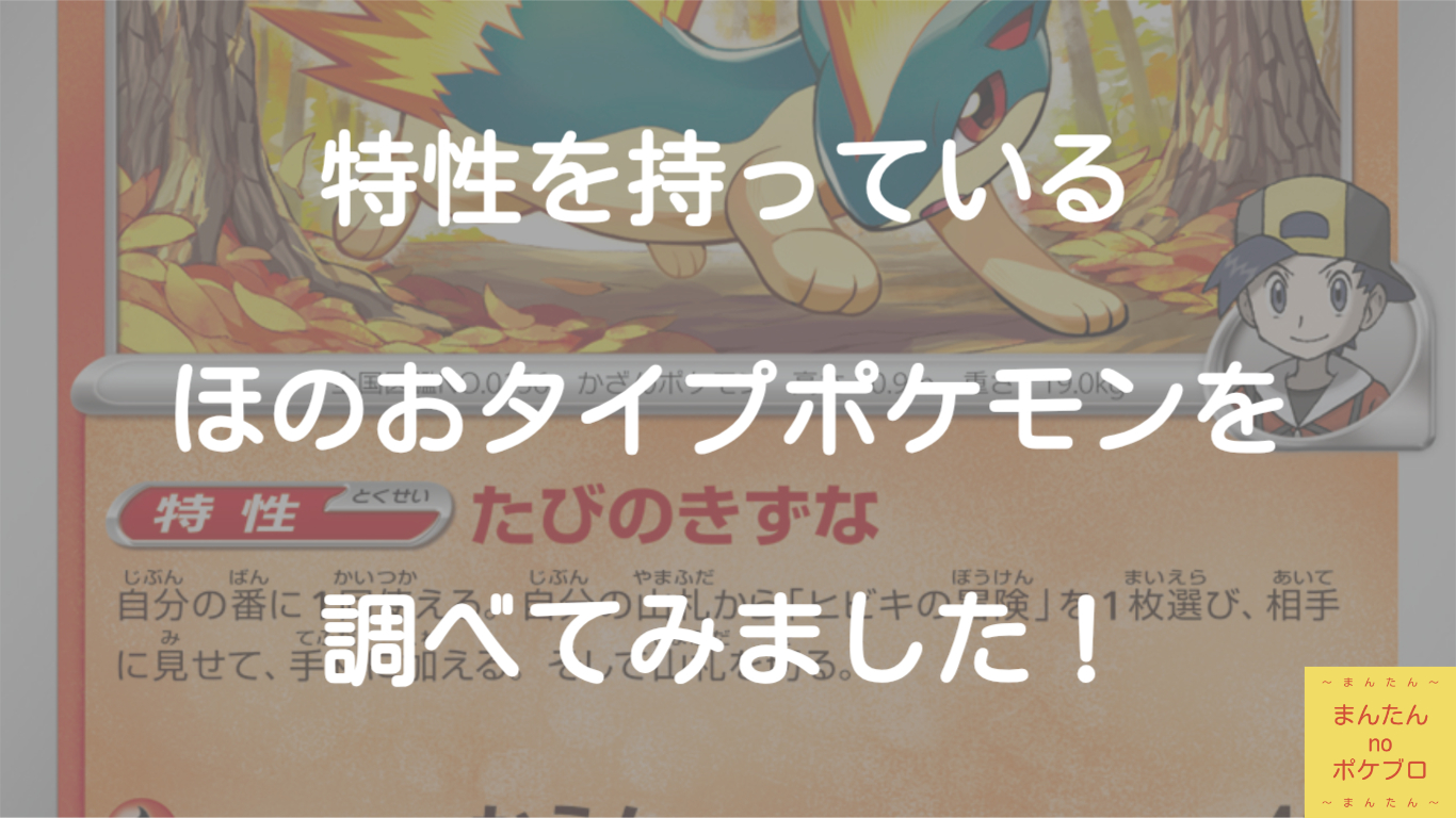 この記事では私のポケカの勉強がてらに特性を持つほのおタイプのポケモンを紹介しています(^-^)/