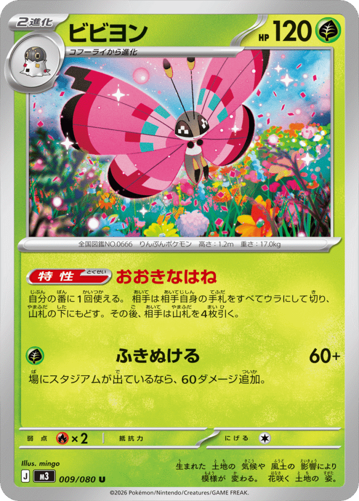 自分の番に、このカードを手札から出して進化させたとき、1回使える。自分のバトル場のくさポケモンのHPを、すべて回復する。その後、回復したポケモンについているエネルギーを、すべてトラッシュする。