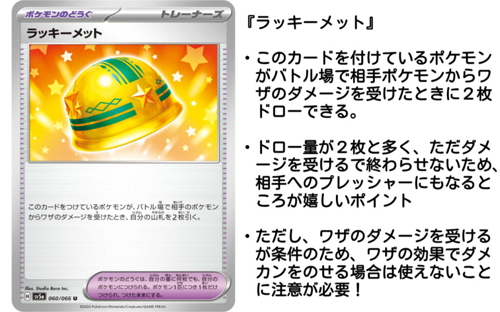 相手からのワザのダメージによって2枚ドローできるため、つぎの展開に繋げやすくなる可能性を高められますし、相手側にも『ドローしちゃうよ~』というプレッシャーを与えられますので、個人的にはけっこう好きなカードです(*^^*)