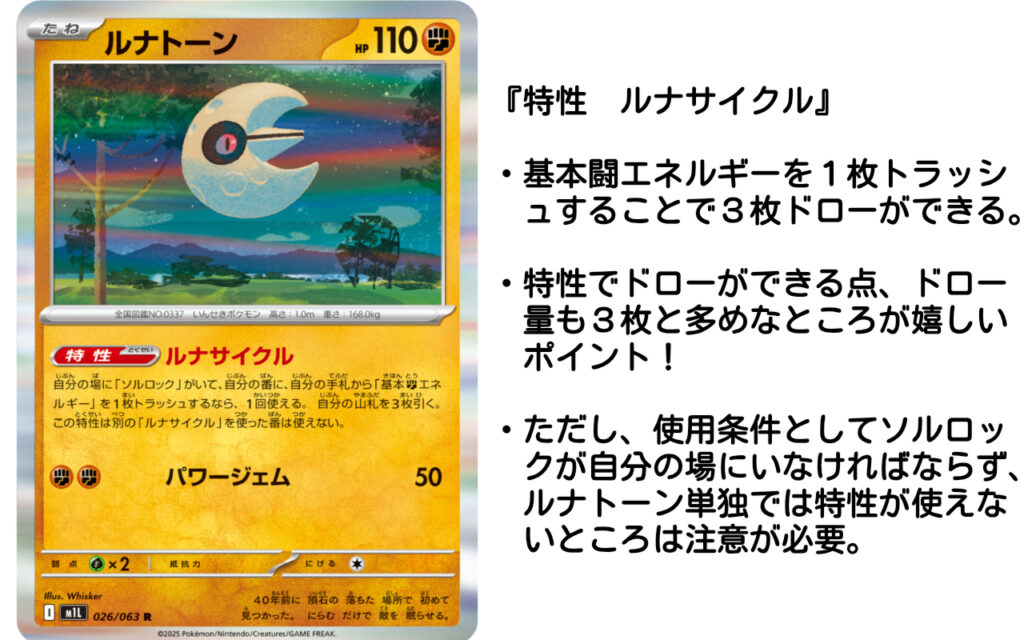 手札からエネルギーを1枚トラッシュすることで使え、自分の手札の枚数が、自分の場の超タイプポケモンの枚数と同じ枚数になるようにドローすることができます。